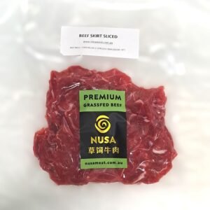 Grass fed beef skirt sliced. Great when cooked on its own, but cook it with veggies from our selection for a delicious dish!