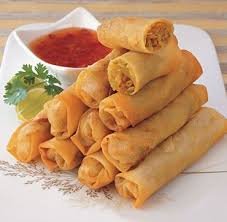 Frozen prawn spring rolls. Delicious and tasty, a perfect addition to any dinner table, whether it be for a party or a quick snack.