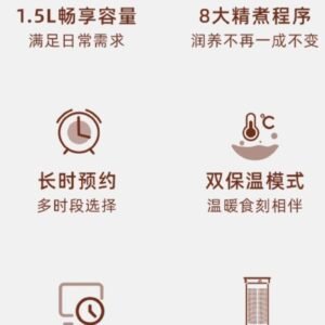 With a 1.5L capacity and 8 cooking programs, this pot allows you to easily switch between different modes to suit your cooking needs. The dual heat preservation mode ensures your meals stay warm, while the removable stainless steel filter makes it easy to separate tea from water. The glass bowl and stainless steel components are designed for easy cleaning, making the HT-360 both functional and convenient.